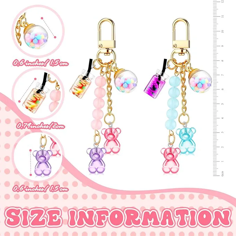 Az akril anyagú kulcstartó kis medve-medállal rendelkezik, más aranyos formákkal kombinálva, játékosan és elbűvölően néz ki, és egy pillantásra vonzza a tekintetet. Az élénk színkombináció eredendően vibrálóvá teszi a kulcstartót. A testre vagy tárgyakra akasztva könnyen a középpontba kerül, és az ember személyes ízlését is bemutathatja. Ez a 2 darabból álló készlet különböző színekben és stílusokban kapható. Kicserélhetők személyes használatra, vagy megoszthatók a legjobb barátokkal és családdal. Akár különböző táskákkal párosítva, akár apró ajándékként adjuk, mindegyik nagyon megfelelő.