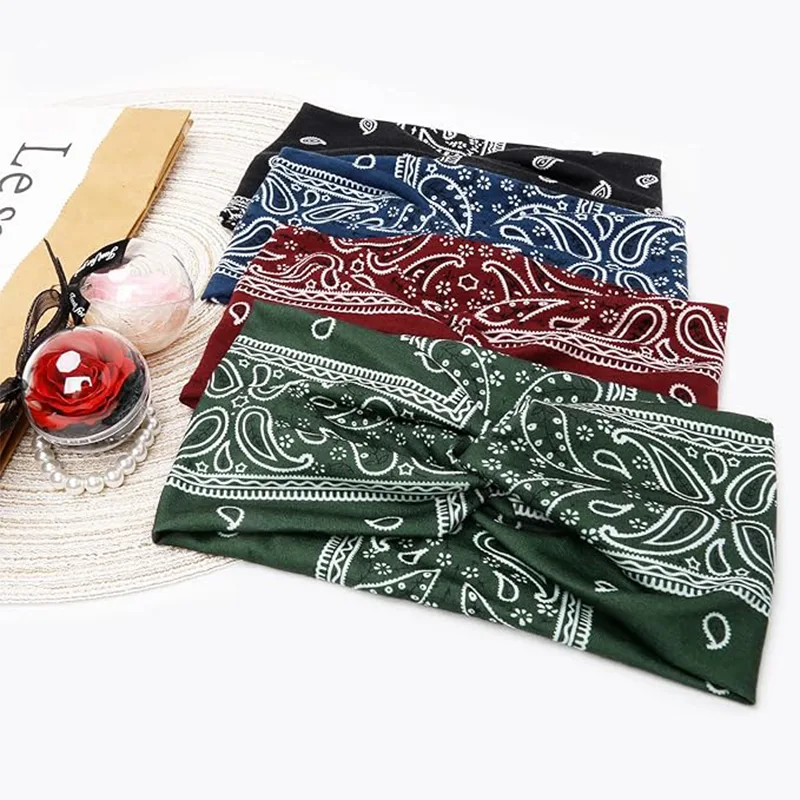 Szép széles karimájú fejkendő hajpánt készlet: Használjon boho bandana poliészter fejpántokat a haj formázásához. Párosítsa farmernadrággal és pólóval, hogy örök divatérzetet keltsen.