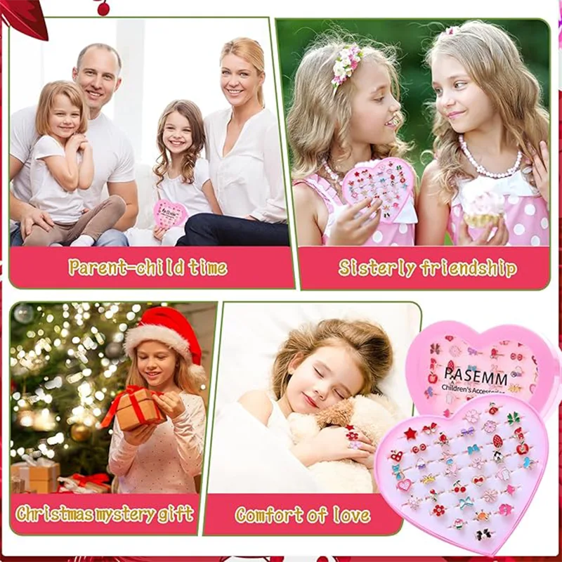 Ezek a lányok gyűrűi egy szív alakú rózsaszín dobozban vannak elhelyezve. A dobozos gyerekgyűrű a legjobb karácsonyi és születésnapi ajándék 4 és 12 év közötti lányoknak. A kifinomult csomagolás tökéletes születésnapi bulikra, ajándékkitöltőkre, ajándékzacskó-töltőkre, partidíjakra, szezonális tevékenységekre, például Halloweenre, Valentin-napra, partidíszekre és lányparti kellékekre. Ez a lányos ékszergyűrű kollekció a tökéletes és imádnivaló karácsonyi és születésnapi ajándék 4 és 12 év közötti lányok számára.