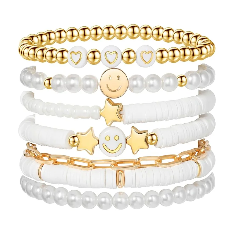 Biztos lehet benne, hogy aranyos tini lány karkötőket vásárol az Yd jeweltől. Ez a karkötőkészlet 7 különböző stílusú platina karkötőt tartalmaz, amelyek különböző elemeket tartalmaznak, mint például mosolygó arcok, csillagok, szívek és aranygyöngyök. Professzionális szolgáltatást és jobb árat tudunk biztosítani Önnek.