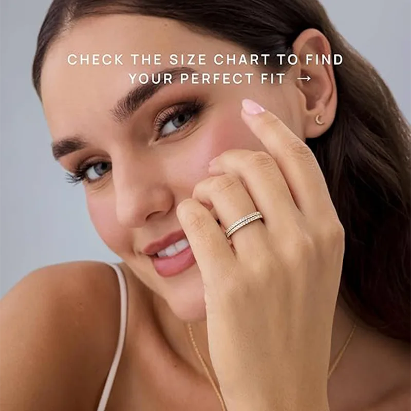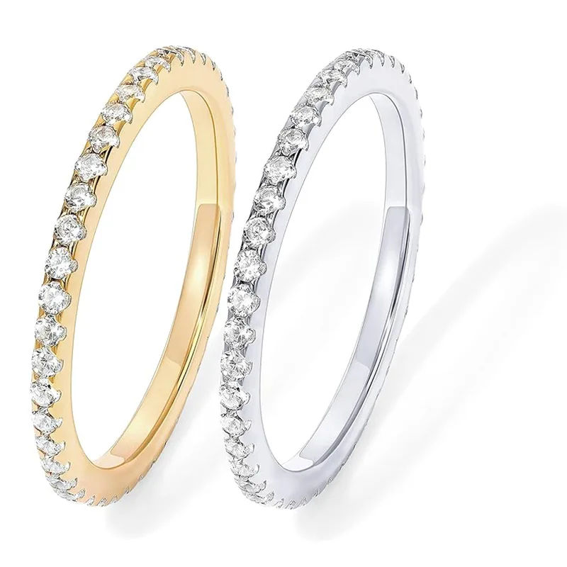 Fénypontok: Ez az 1,8 mm vékony női eljegyzési gyűrű eljegyzési gyűrűkkel, speciális kiegészítőkkel vagy fitneszgyűrűkkel párosítható, így zökkenőmentes és divatos kombinációt alkothat. Rétegezhet gyémánt női divatgyűrűt kedvenc arany ékszereivel, hogy merész és szemet gyönyörködtető hatást keltsen, vagy viselheti önmagában is, hogy kifinomult eleganciát mutasson be.