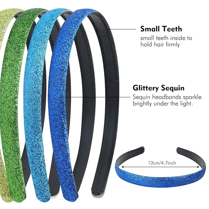 Állítható méret: Ezeknek a Glitter ünnepi öltöztetős műanyag fejpántoknak az eredeti átmérője hozzávetőlegesen 12 cm / 4,7 hüvelyk, de feszíthetőek, hogy különböző emberek fejéhez illeszkedjenek, így mindenki viselheti őket.