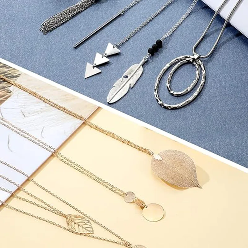 A női divatos pulóver nyaklánc pontosan megfelelő hosszúságú, ami finomíthatja a nyak vonalát és megtörheti a pulóver egyhangúságát. Legyen szó bő pulóverről, testhezálló kötött pulóverről vagy vastag kabátról, hosszú medálokkal párosítva azonnal kifinomultabbá teheti ruháját, és még több réteget adhat az összképhez.